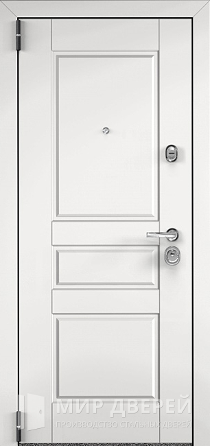 Эта входная металлическая дверь, представленная в белом цвете, является оптимальным выбором для тех, кто ищет надежность и функциональность. Она изготовлена из оцинкованной стали толщиной 2 мм с утепленными панелями из МДФ ПВХ, обеспечивая отличную изоляцию благодаря шумо- и теплоизоляционным материалам на выбор — пенопласту или минеральной вате. Конструкция двери включает три ребра жёсткости для дополнительной стабильности и прочности.